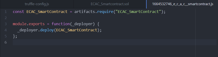 (8) ECAC_Smartcontract.sol에는 기존에 작성한 SmartContract를 가져왔고, migrarion은 아래와 같이 수정