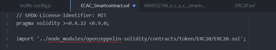 (1) ECAC_Smartcontract.sol 코드에 ERC20.sol을 임포트