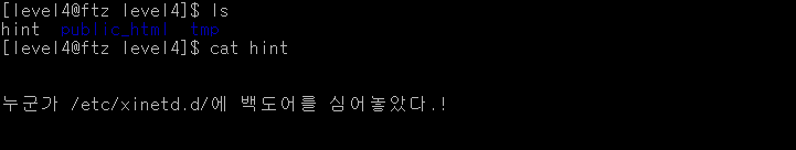 /home/level4/tmp/backdoor로 이동하려 하였으나 없다고 나와서