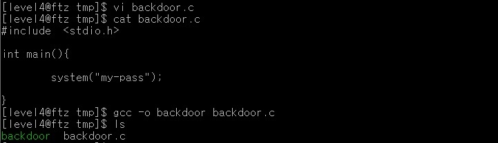 level5의 유저 권한으로 /home/level4/tmp/backdoor을 실행시키며