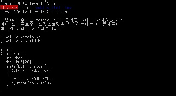 이번에도 hint와 attackme 파일이 있고, cat 명령어로 hint를 읽었다.