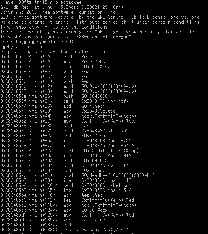 <main+91> 에서 check와 0xdeadbeef의 값을 확인한다. check의 값은 0xffffff98이다.
