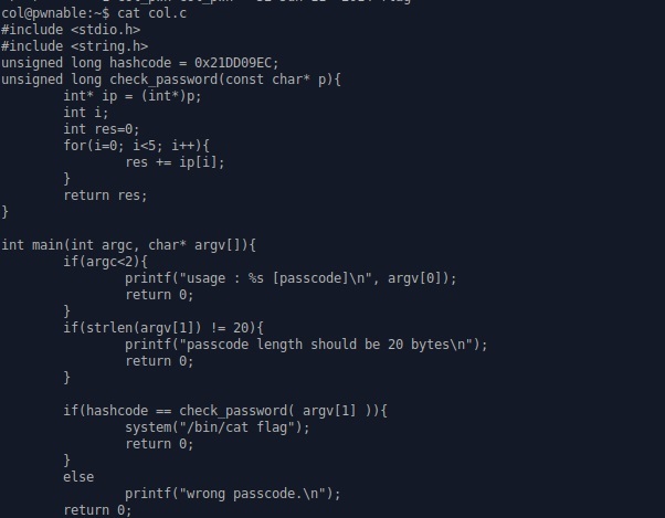 먼저 읽을 수 있는 파일을 파악해야 실행 파일을 활용할 수 있을 것 같아 col.c 파일을 읽어보았다.