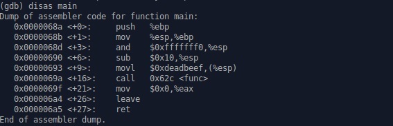 main에서 func 함수가 호출되는 주소는 0x0000069a이다.
