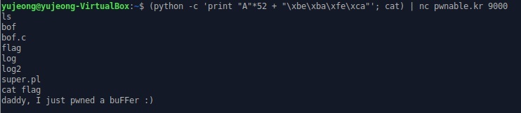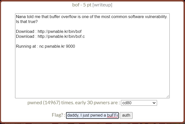 문제에 보면 nc pwnable.kr 9000으로 bof에 nc를 걸어놓았을 것을 짐작할 수 있다.