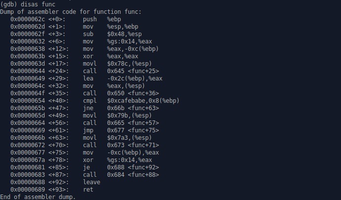 func 함수에서 gets 함수가 호출되는 주소는 0x0000064f이다.