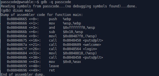passcode1 자리에 원하는 값을 넣기 위해 passcode1 입력 이후에 실행되어지는