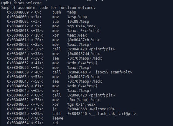welcome 함수를 분석한 값이다.
