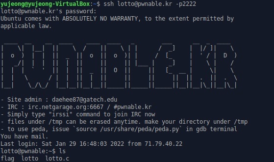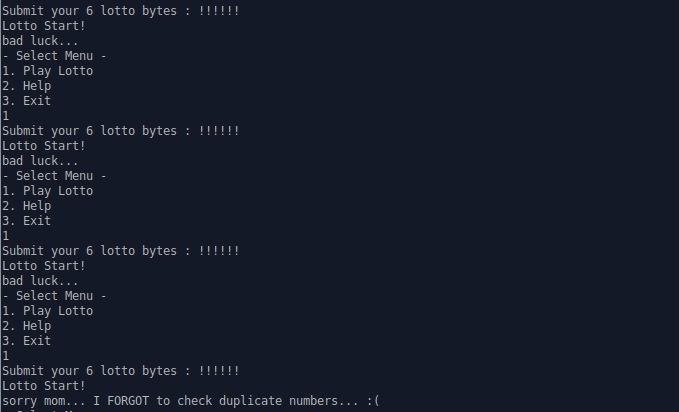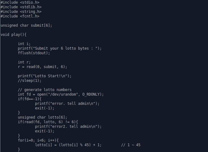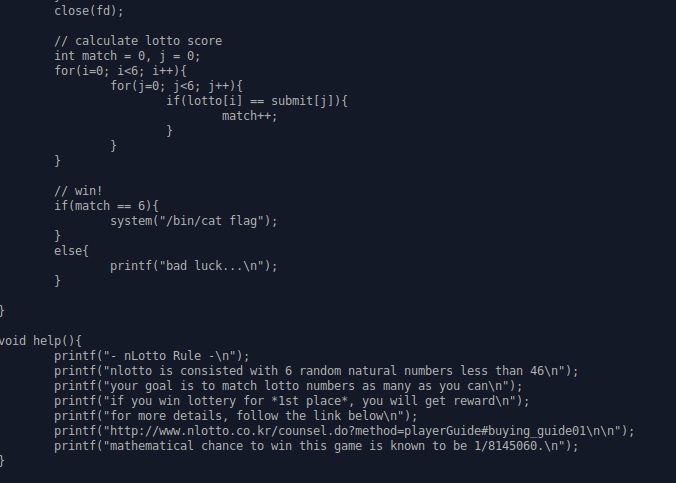 1~45까지 아스키 코드 중에 아무 값이나 6개를 넣어서 이중 하나만 lotto 번호와 일치하면