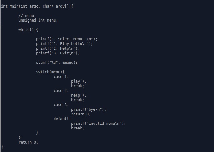 문제를 풀려면case 1을 선택하여 play() 함수가 실행되게 하면 된다.