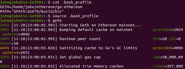 - bash_profile에 Geth 프로그램의 경로가 걸려있음