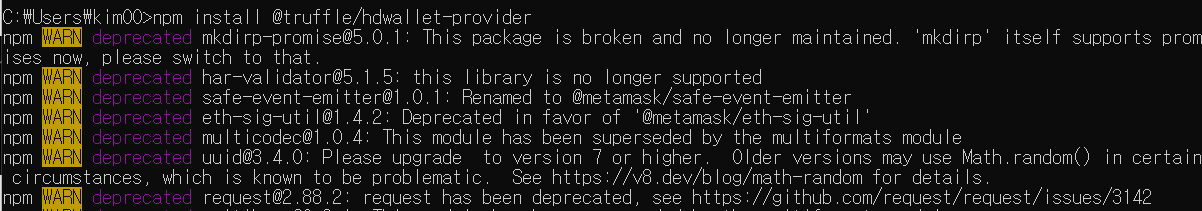 - 배포하는 위치와 동일한 위치에 truffle/hdwallet-provider 삭제 후 재설치하여 해결