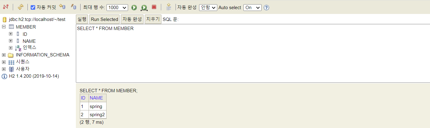 - 데이터를 DB에 저장하므로 스프링 서버를 다시 실행해도 데이터가 저장됨
