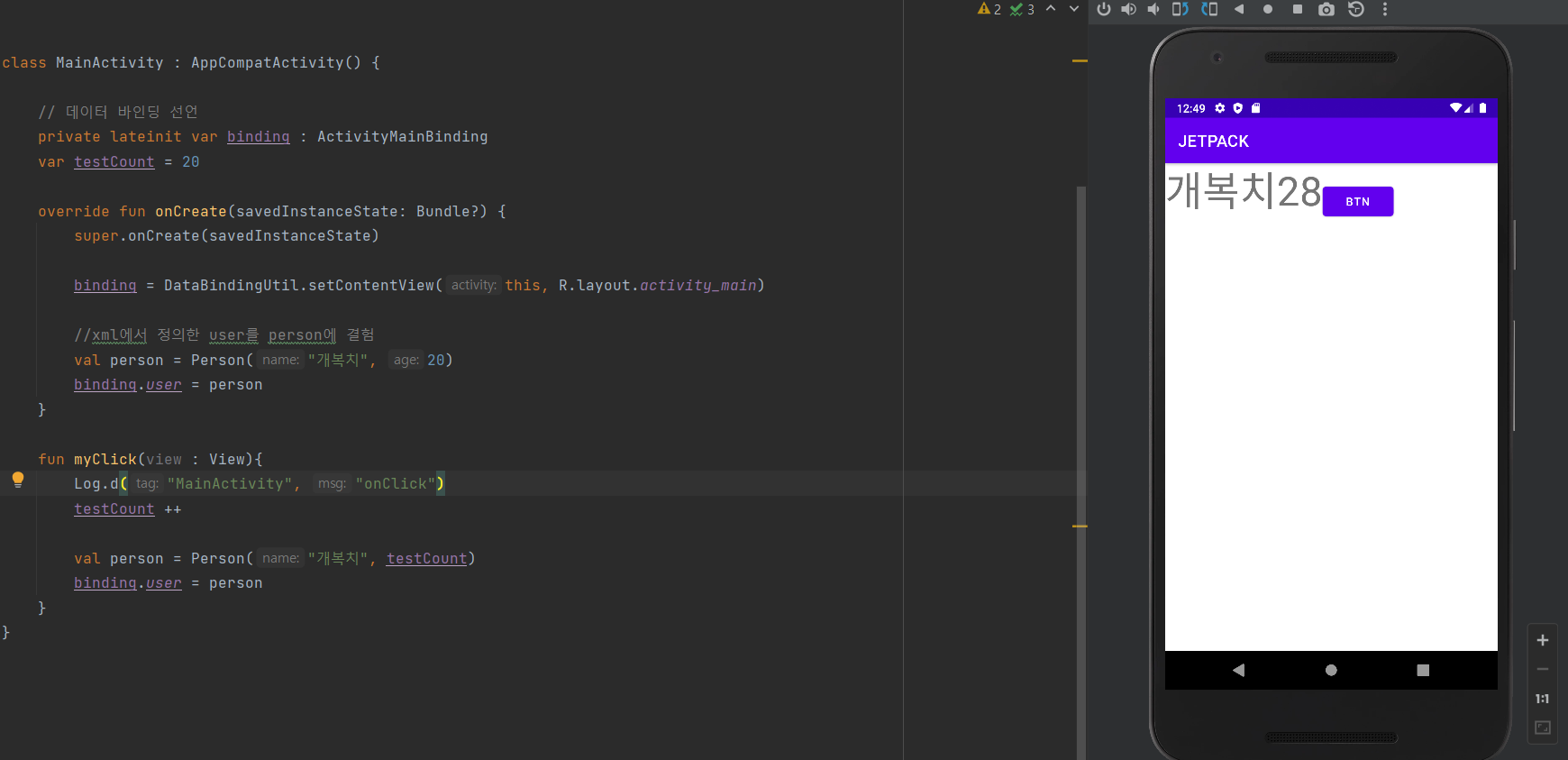 - 데이터 바인딩으로 data class를 바로 불러와서 사용할 수 있음