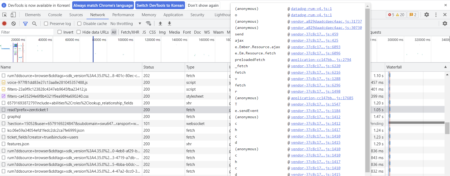 - 해당 페이지에서 개발자 옵션의 Network를 열고 새로고침했다