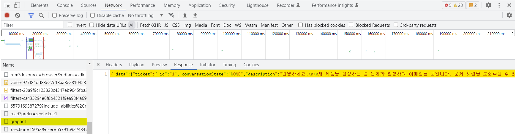 - URL을 https://swu6478.zendesk.com/api/lotus/graphql으로 넣으면 오류가 발생하고
