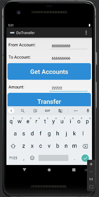 (2) 로그인 된 InsecureBankv2 앱에서 Transfer 기능을 수행한다.
