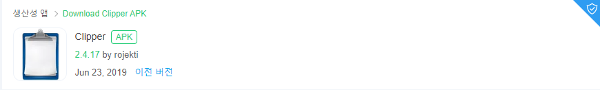 - https://apkpure.com/kr/clipper-clipboard-manager/org.rojekti.clipper 사이트에서 Clipper Clipboard Manager_v2.4.17_apkpure.com.apk 파일을 다운로드 받은 후에 해당 파일의 이름을 Clipper_Clipboard_Manager_v2.4.17_apkpure.com.apk 로 변경한다.