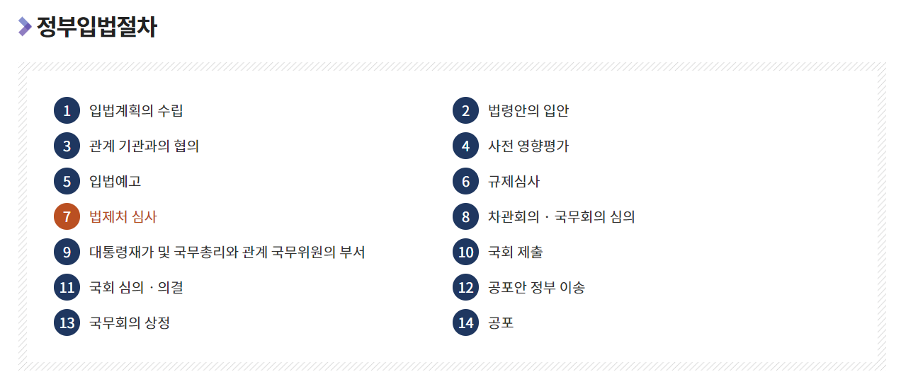 - 의원 입법 절차 : 10 국회 제출 ~14 공포