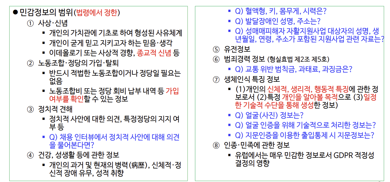 - 생체인식 특징 정보 : 기술적 수단을 통해 생성 → 민감정보
