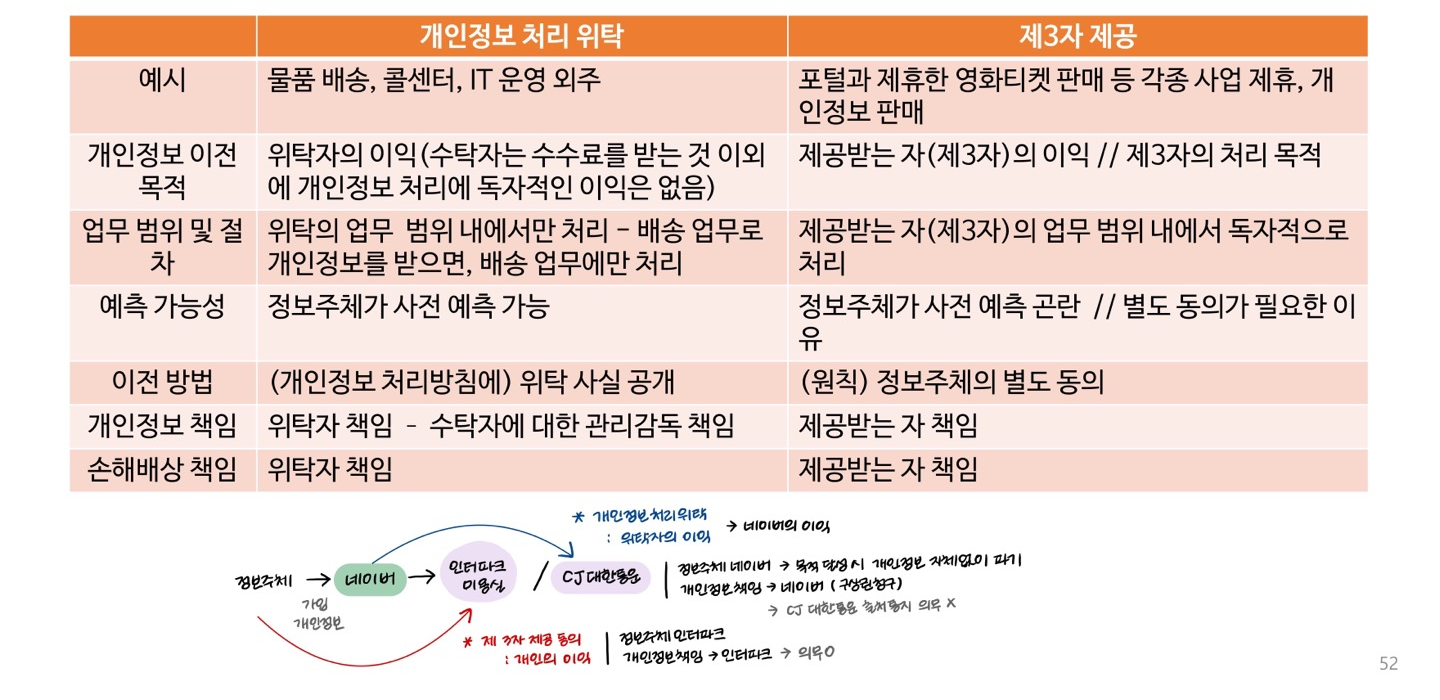 | 1항 개인정보처리자가 제 3자에게 위탁할 경우 문서/전자 문서로 계약해야해