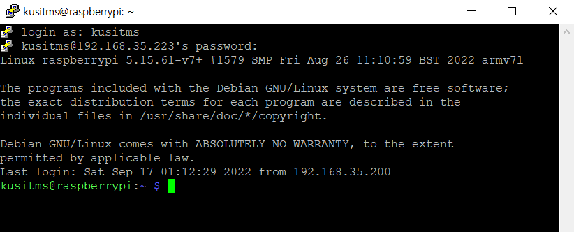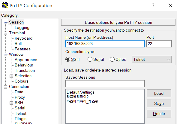 (4) PuTTY에서 라즈베리파이 IP로 Open