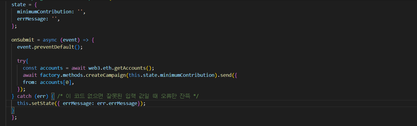 - 트랜잭션을 보낼 accounts를 web3에서 가져옴