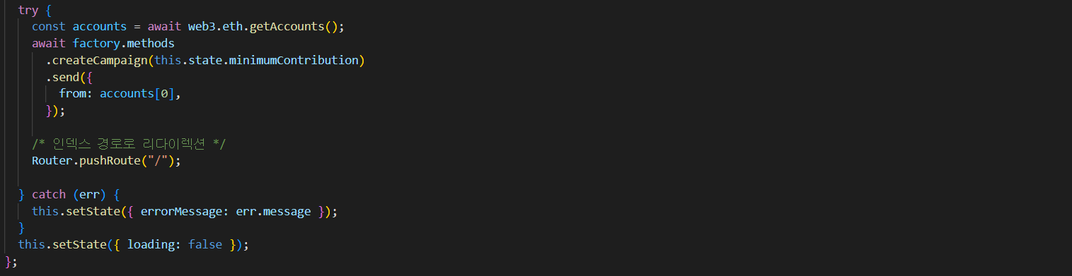 - new.js > 계약을 생성한 직후 사용자를 인덱스 경로로 리다이렉션