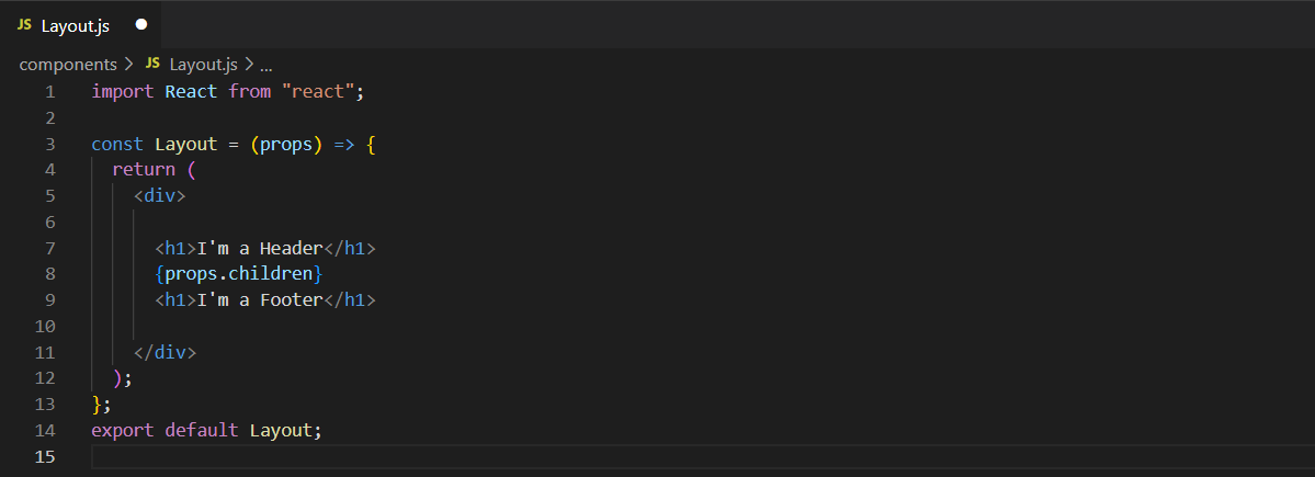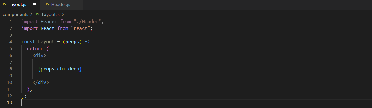 - Layout.js 파일을 만들어 표시하고자 하는 일반적인 요소를 모두 담고 재사용! ex. 헤더, 바닥글, 사이드바 등